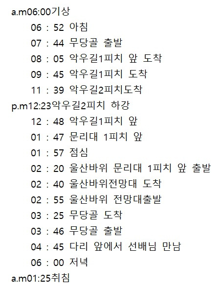 당시 동기가 썼던 산행일지 일부. 강인하면서도 꼼꼼했던 멋진 친구였다.