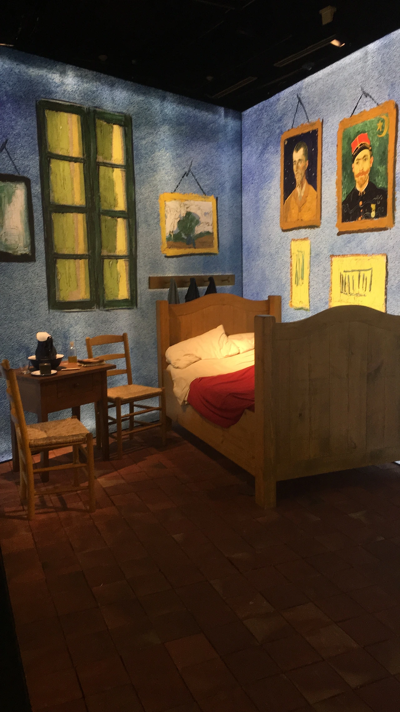 고흐의 방을 그대로 전시해 놓은 점도 포인트 중 하나였다. 많은 사람들이 봐 온 그 구도 그대로 심지어 의자도 똑같은 모양이어서 흥미 있게 지켜보다가 냉큼 사진도 찍었다. 사실 여기가 최대의 포토존이기도 했다. 안 찍어가는 사람이 없을 정도로 포토존으로 완벽한 곳이었다. 포토존은 요즘 전시의 트렌드이기도 하고.