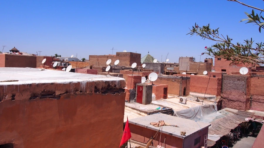 카페 옥상에서 바라본 마라케시는 낮고 붉은 건물들이 우리 아래로 펼쳐져 있었다. 우리가 카페까지 오느라 지나온 좁디좁은 골목들 만큼 빈틈없이 모여있었는데 그 위로는 하얀 위성안테나가 빼곡하게 꽂혀 있었다. 사람들과 오토바이로 북적였던 골목처럼 마라케시의 건물 위도 전선들과 안테나들로 북적였다.