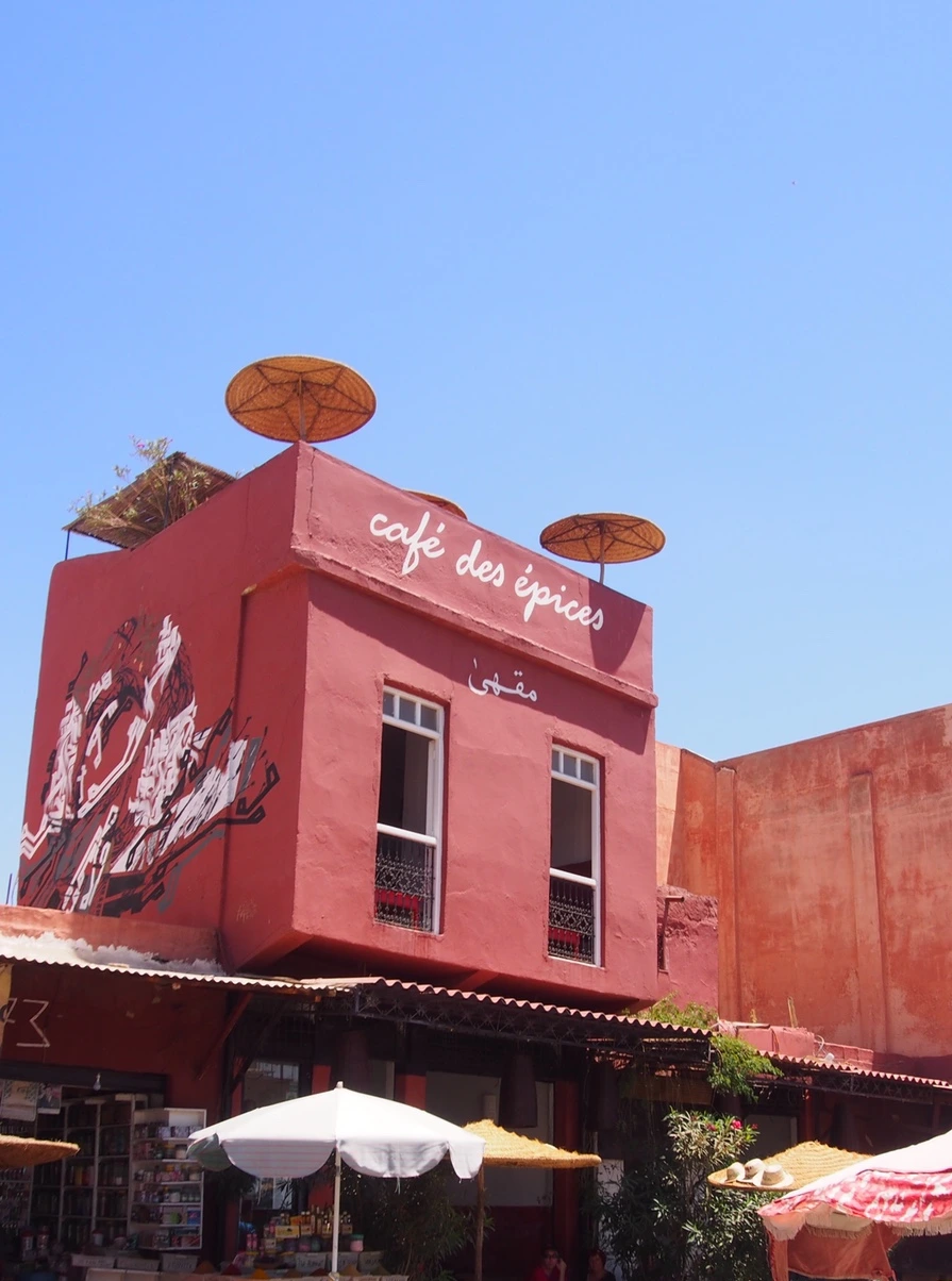 스파이스 카페는 분위기 좋은 곳에서 커피와 함께 간단히 아침을 먹기 위해 버딘이 안내한 카페이다. 작은 광장의 향신료 가게들이 카페의 창을 통해서 보였고 카페의 옥상에서는 향신료 시장과 함께 마라케시 메디나에 낮게 깔려있는 건물들을 볼 수 있었다.