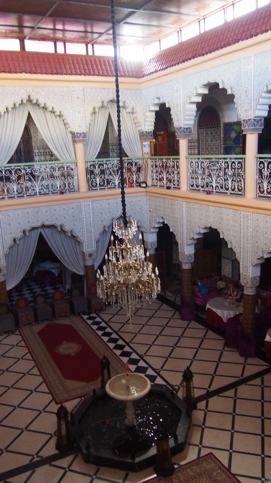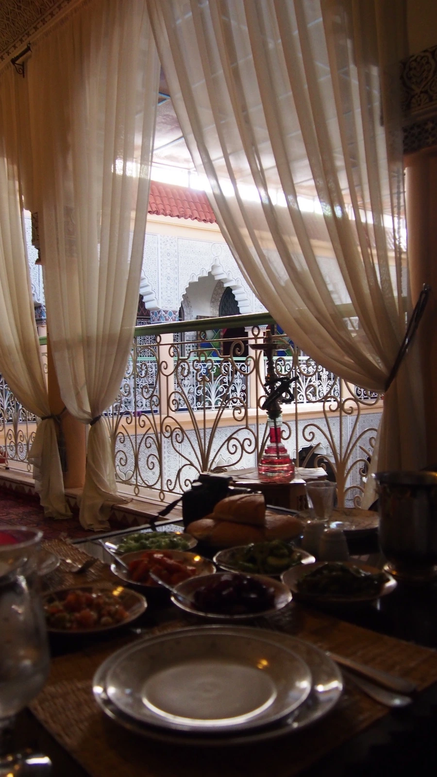미술관을 구경하고 나서 점심시간을 훨씬 넘긴 우리는 모로코 전통 음식을 맛보기 위해 거리를 헤매다 어느 한 식당에 들어섰다. 배도 고프고 더위에 지친 우리는 모로코 전통 스타일의 점심을 먹을 수 있다는 말에 고민 없이 식당 직원을 따라갔다. 그런데 생각보다 큰 입구와 너무 넓은 내부 공간을 보고 우리가 생각했던 것보다 과하다는 걸 알았지만 이미 늦었다. 자리에 앉자마자 세팅을 해주며 우리를 위한 메뉴를 추천해 주었고 주문까지는 시간이 얼마 걸리지 않았다.