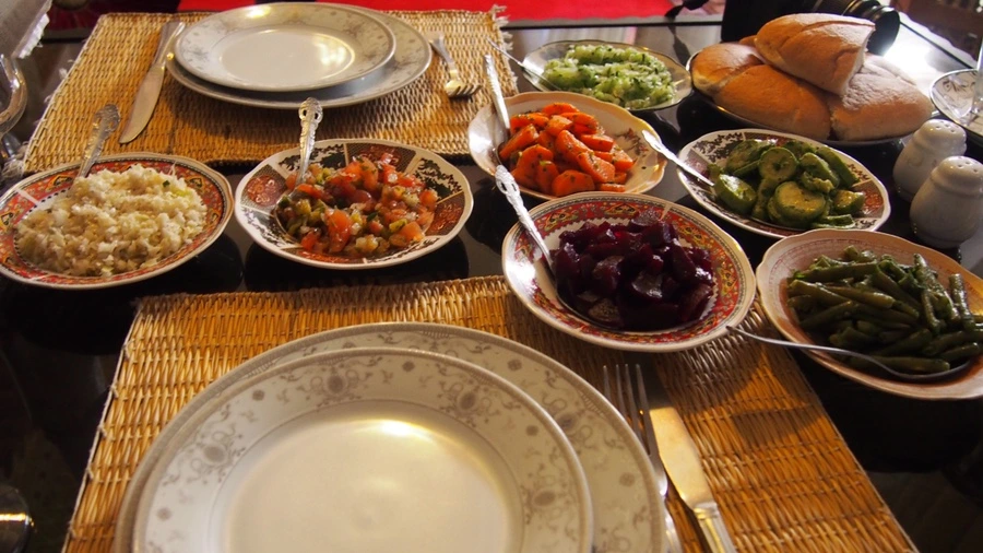스티븐과 나는 메인 메뉴 하나를 나눠먹으려 했지만 웨이터는 양이 너무 적다며 꼭 두 개 이상은 주문하는 게 좋다고 했다. 그의 말을 잘 믿은 우리는 카레와 타진을 각각 주문했다. 그런데 기본으로 제공되는 반찬부터 테이블을 가득 채웠고 두 개의 메인 요리까지 양을 보니 최소 4~5명은 거뜬히 먹을 수 있는 양이었다.