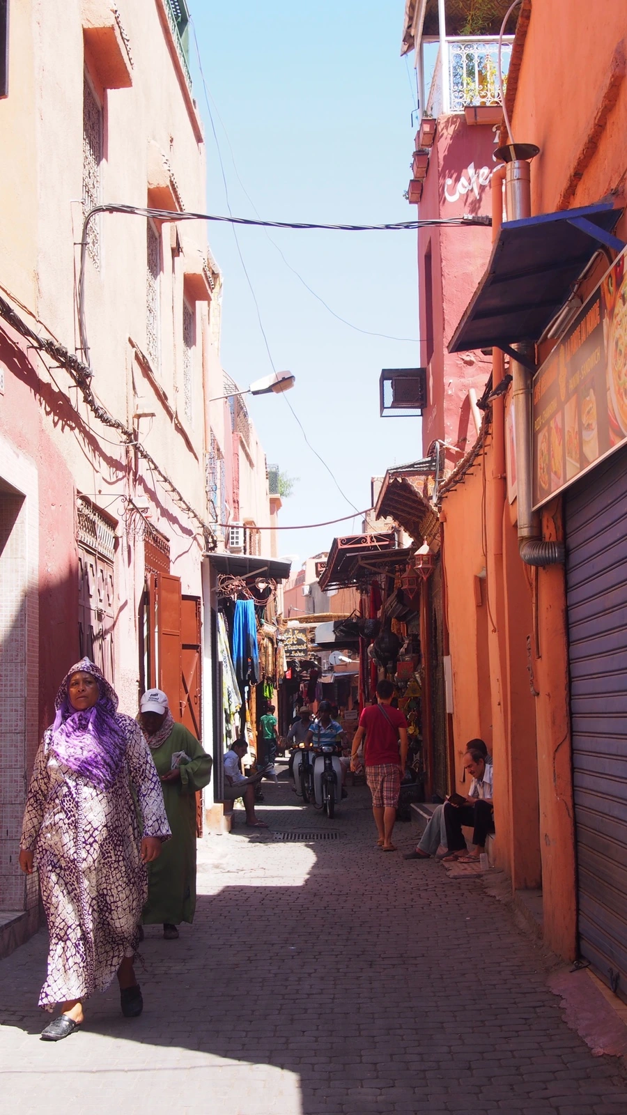 숙소 앞 좁은 골목을 살짝 걸어 나오면 바로 큰 거리가 나왔다. 마라케시의 중심지 자마 엘프나 광장 Jemaa el-Fnaa 과 수크 세마린 Souk Semmarine 전통시장으로 연결되어 있는 거리는 아주 북적였다. 현지인과 관광객이 함께 거리를 채웠고 그 사이를 오토바이들이 바쁘게 지나갔으며 수레를 끄는 소나 말이 지나간 흔적(그들의 배설물)이 남아 있었다.