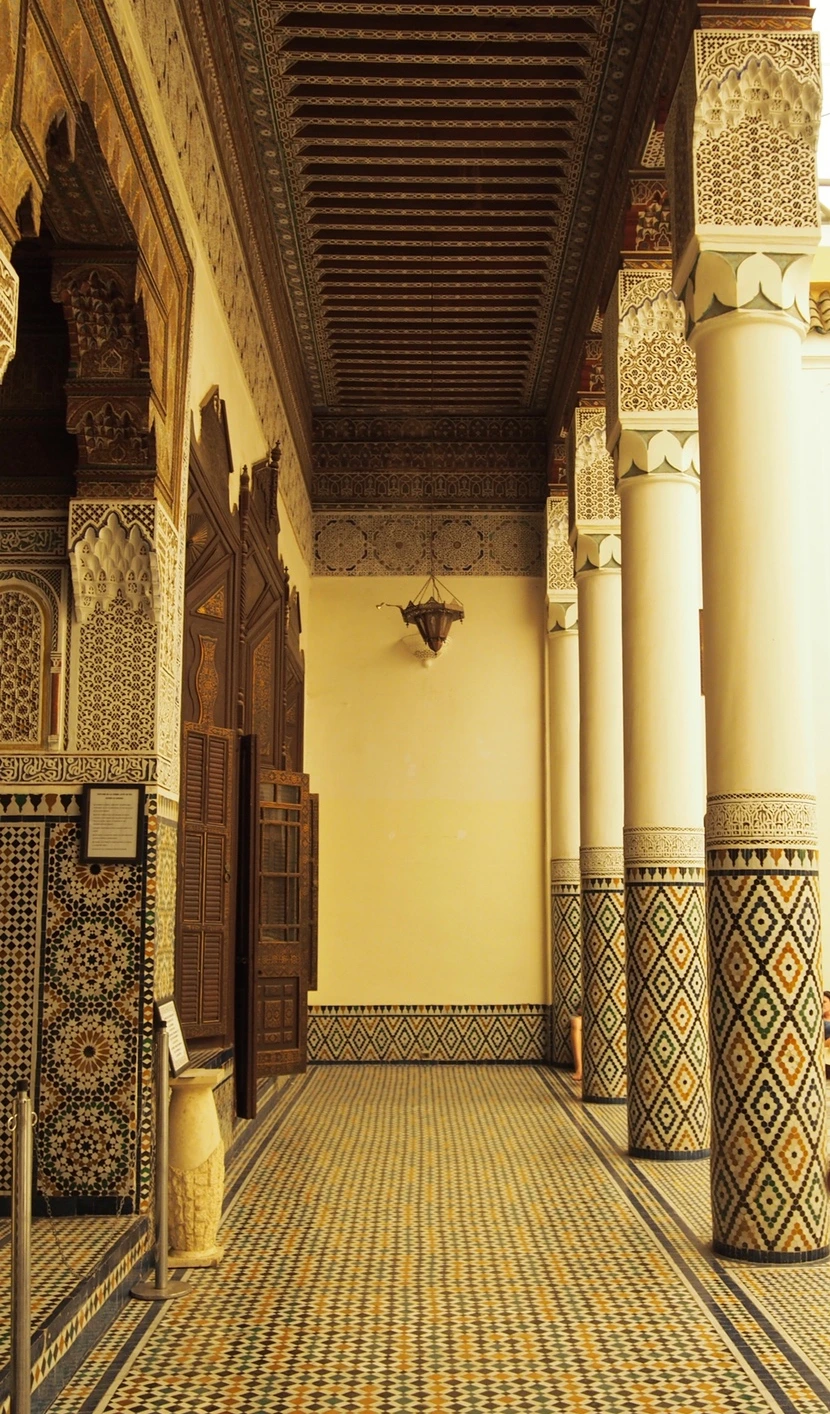 조각, 타일, 목재 위에 새겨진 이슬람의 기하학적인 무늬들이 건물 전체를 장식하고 있었다. 그라나다의 알람브라궁전에서 보았던 것과 같은 장식들을 볼 수 있어 반가웠지만 학교의 시설들이 제대로 보존되지 않아 많이 낡은 탓에 훨씬 화려하고 섬세했던 알람브라 궁전과 비교가 되면서 아쉬운 마음이 들었다.