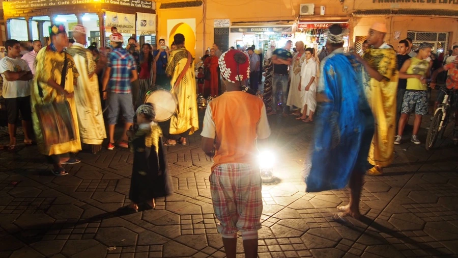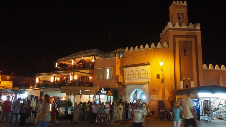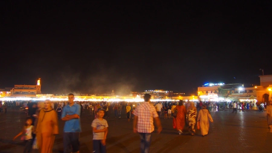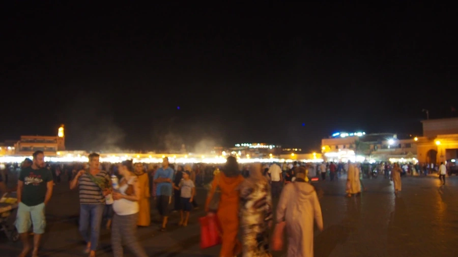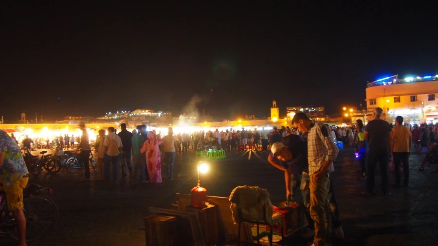 코란을 읊는 소리가 음악처럼 흘러나왔고 수천 명 혹은 수만 명의 사람들이 광장에서 각자 자신들의 일을 하고 있었다. 주문받은 음식을 조리하는 요리사, 호객하는 점원, 가족들과 저녁식사를 하는 사람들이 가장 많이 광장을 차지하고 있었다. 이외에도 관광객들에게 호응을 유도하며 전통춤을 추는 사람들, 이렇게 복잡한 광장 한편에서 알라에게 기도를 드리는 사람들 그리고 이 모든 순간을 즐기고 있는 나 같은 관광객 등등 모두가 자마 엘프나 광장에서 마라케시의 밤을 누리고 있었다.