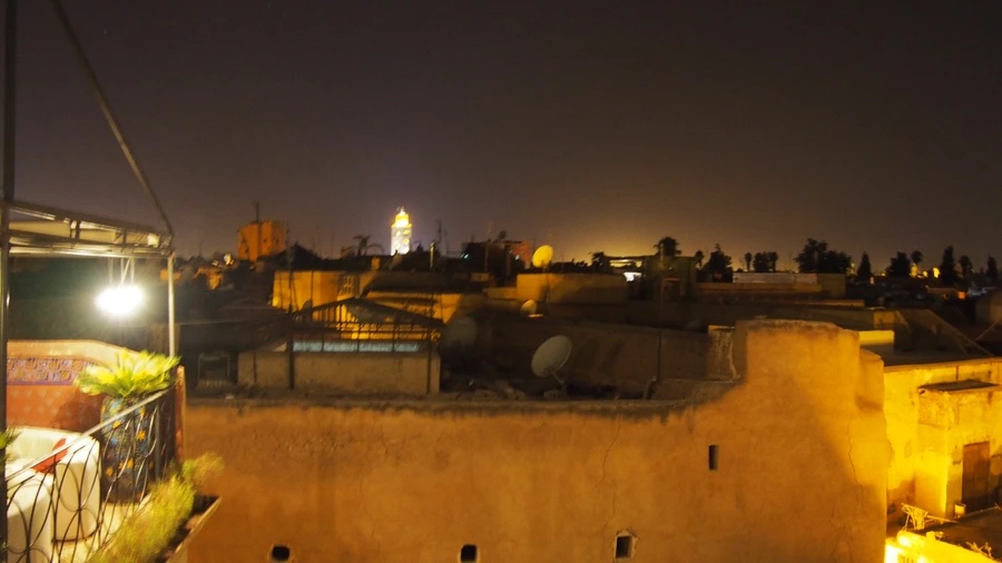레스토랑 테라스에 올라오자 멀리 모스크의 탑 끝부분과 야시장의 일렁이는 주황 불빛이 보였다. 레스토랑 주변은 광장의 웅성이는 소음도 들리지 않았고 아주 고요했다. 마라케시에서 가장 마음에 들었던 곳이었는데 장소를 표시해두지 않아 어디였는지 기억나지 않는다. 핸드폰 인터넷을 사용하지 않고 여행 중일 때는 이런 점이 아쉽다.