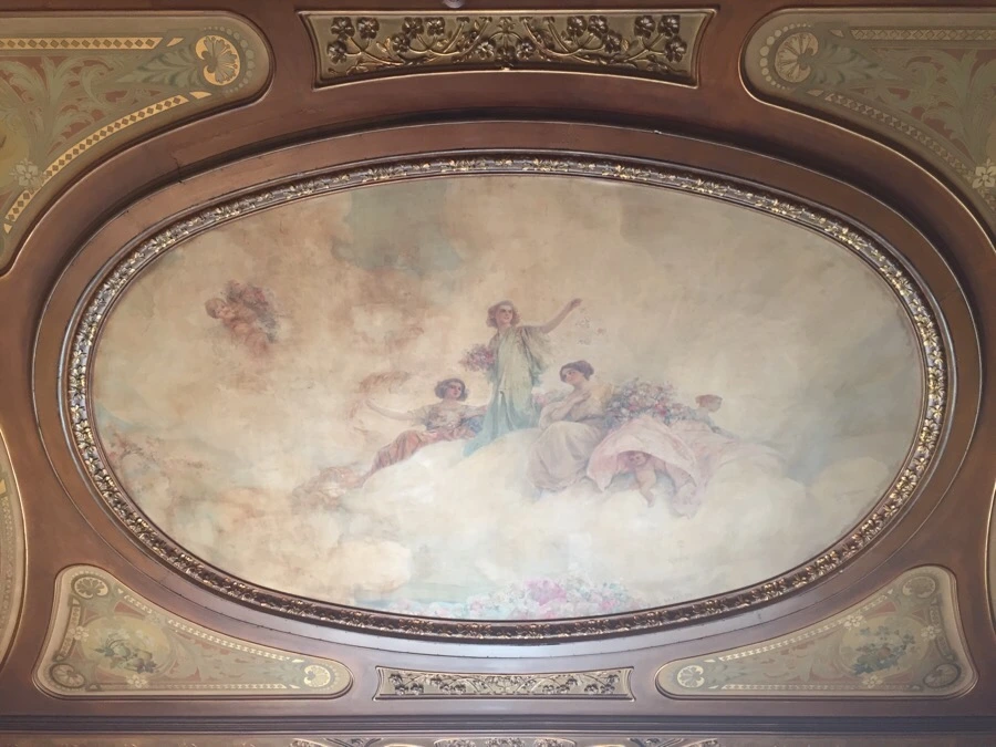 1950년대 이 건물이 회관 소유가 되면서 그 당시 의장이 꾸몄다고 하는데 고급스러운 재료들을 활용해 화려하게 꾸며져 있다.