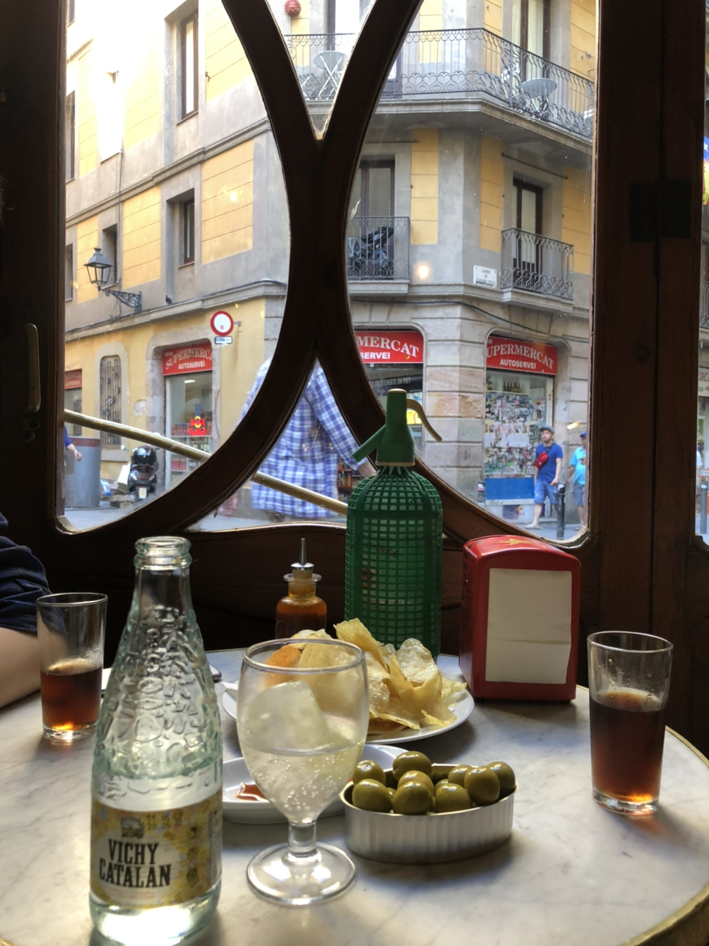 바에 놓여진 테이블과 의자는 19세기 카탈루냐에서 주로 사용했던 디자인이고 실제로 100년 넘게 그대로 이 바에서 사용되고 있는 것들도 있다. 이렇게 오래된 테이블 중에서는 보수가 되지 않아 낡은 쇠 부분이 날카로운 경우가 있어 손이 베이지 않도록 조심해야 한다.