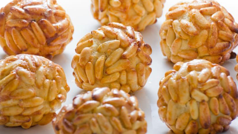 까스따냐다에서 빠질 수 없는 빠나예츠는 아몬드 가루에 설탕과 계란을 넣어 작고 동그랗게 만든 반죽에 잣을 붙여 만든다. 빵과 쿠키 중간 정도 되는 질감의 빠나예츠는 와인뿐만 아니라 커피와도 잘 어울려 까스따냐 내내 입에 넣게 된다.