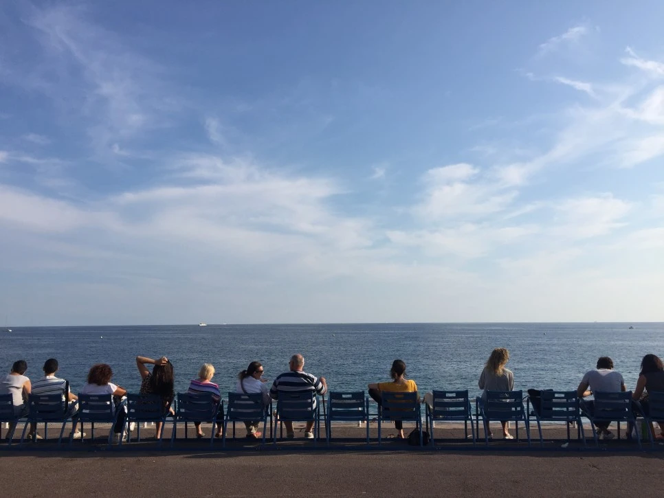 구시가지의 좁은 골목을 벗어나자 드넓은 지중해가 나타났다. 작은 해변들이 산과 바위 사이에 숨어있는 카탈루냐의 코스타 브라바 해변들과 달리 니스의 해변은 아주 크게 트여있었다. 이 해변의 거리는 서쪽 공항에서부터 동쪽 항구까지 무려 7km나 된다.