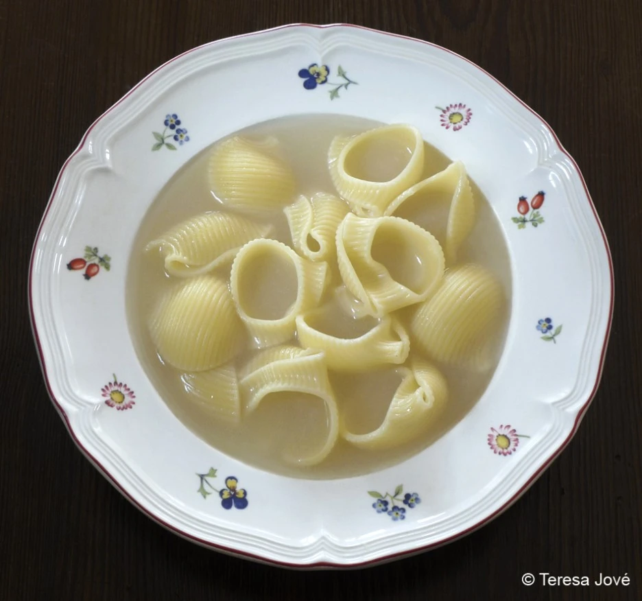 식사할 시간이 되면 크리스마스에만 먹는 음식들이 하나씩 테이블에 놓인다. 첫 번째로 먹는 애피타이저는 '갈렛츠'라고 불리는 수프다. 고기 육수에 달팽이 모양처럼 생긴 갈렛이라는 파스타를 넣어 먹는다. 뜨거운 국물 요리가 없는 카탈루냐에서 유일하게 먹을 수 있는 따뜻한 수프라서 크리스마스가 되면 가장 반가운 요리였다.