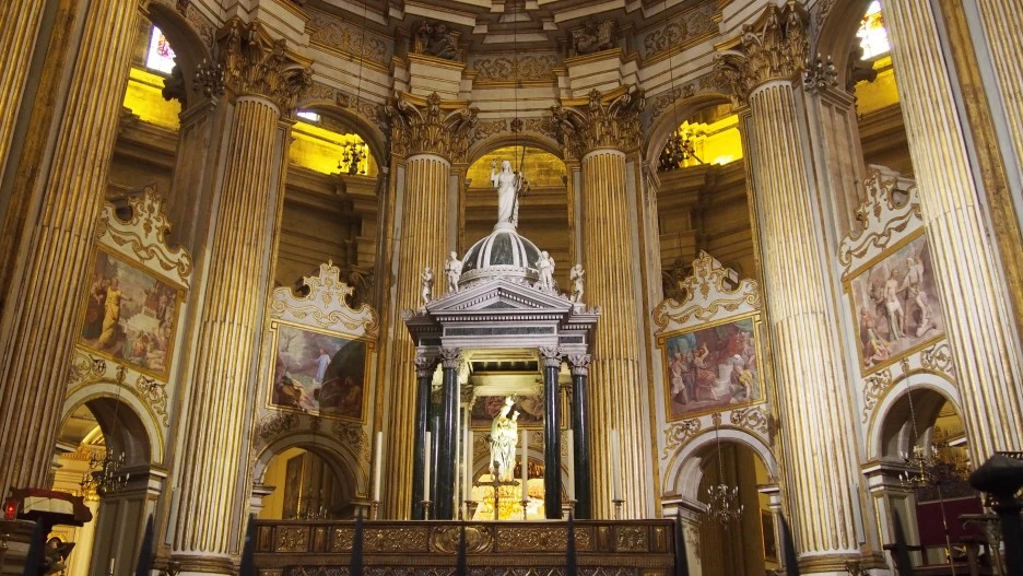성당 내부는 41.79m의 어마어마한 높이로 그 안에 들어선 내가 한없이 작은 존재로 느껴졌다. 안달루시아의 건물들 중에서 가장 높은 이 성당의 내부는 하늘에 닿을 듯이 솟은 기둥이 다양한 무늬들로 장식된 돔 형태의 천장을 받치고 있었다. 직사각형 형태인 성당의 내부는 3개의 네이브와 제단, 성가대석 등으로 구성되어 있었는데 르네상스와 바로크 스타일의 영향을 받았다고 한다.
