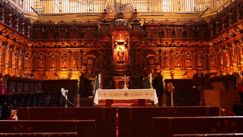 가장 화려한 장식 중 하나였던 성가대석은 17세기에 마호가니와 삼목 나무로 만들고 40개의 조각상들로 장식되어 있었다. 마호가니 나무로 만들어진 작은 조각상들이 가득 자리 잡고 있는 성가대석은 하얀 대리석과 대조되어 가장 기억에 남게 되었다. 두 개의 오르간은 4천 개 이상의 파이프로 이루어져 있는데 18세기 성당 악기의 특이하면서도 아름다운 모습을 볼 수 있고 현재도 연주가 가능할 정도로 관리가 잘 되었다.