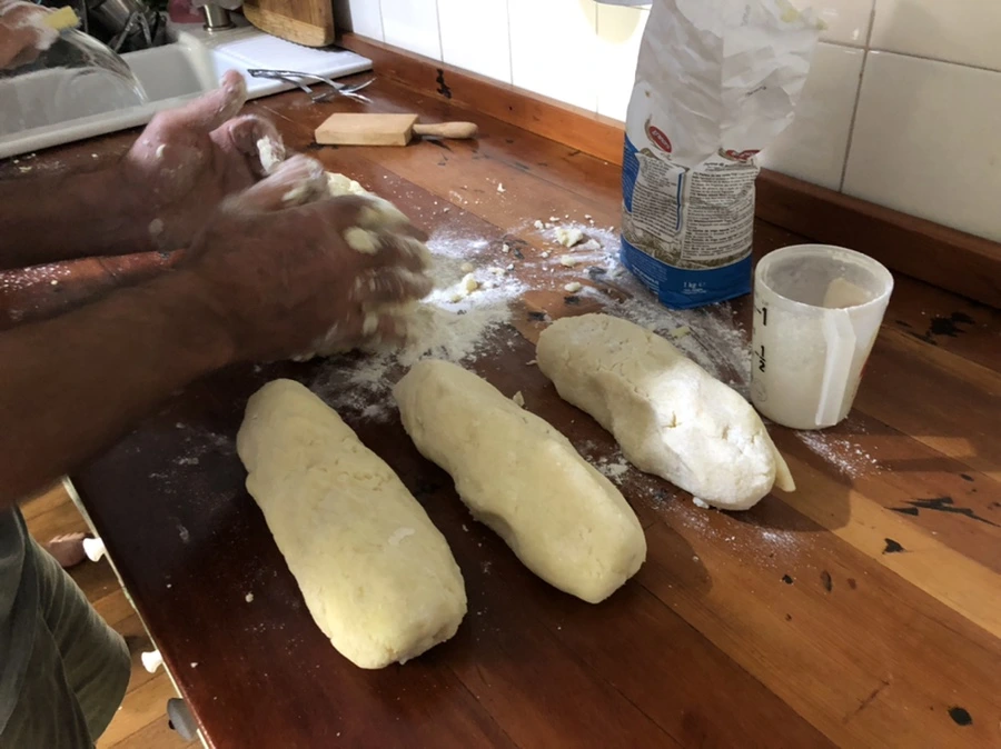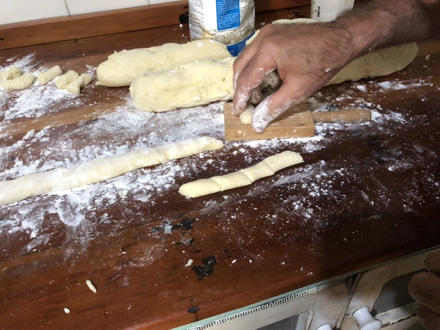 감자를 삶고 으깬 후 밀가루를 섞어 반죽하고 조금씩 떼어내 뇨끼 틀에 굴리거나 포크로 굴려 모양을 잡으면 완성이었다. 로잔나 동생 가족이 같은 집에 묵고 있었는데 로잔나 조카들과 같이 뇨끼를 반죽하고 만들었다. 피터의 시범을 보고 난 후에 누가 더 예쁘게 많이 만들 수 있는지 경쟁하며 만들었는데 적당한 점성과 크기를 맞추는 것과 줄무늬 모양을 예쁘게 내는 게 쉽지 않았다.