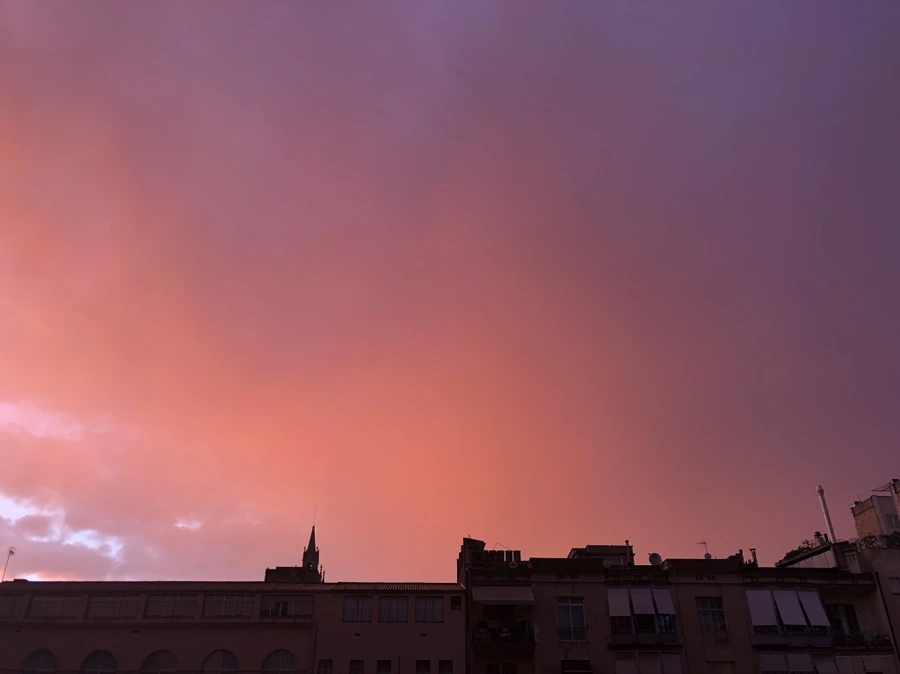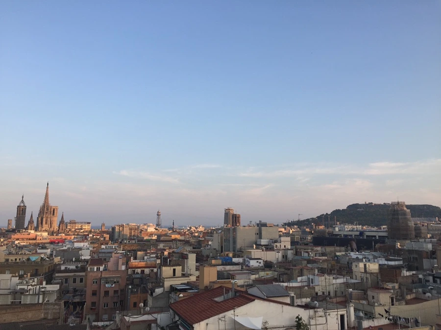 바르셀로나는 가운데가 비어있는 ㅁ 모양으로 블록의 네 면을 둘러 건물들이 세워져있는데 블록의 중정에 해당되는 이 부분은 거리의 소음이 완벽히 차단되면서 아주 조용하다. 이전 집에서 자동차 소음에 너무 스트레스 받았던 나는 집 제일 안쪽 가장 조용한 중정을 향해 창과 테라스가 나있는 방을 찾고 있었는데 조용한 이 테라스가 내 차지였다. 집주인과 같이 쓰는 공간이었지만 서로 테라스에서 마주칠 일이 없었다. 서쪽을 향하고 있는 내방 테라스에서 하루 종일 햇빛이 들어왔고 예쁜 해 질 녘 노을을 볼 수 있었던 데다가 다음 블록에 있는 교회의 종소리가 매시간마다 들렸다.