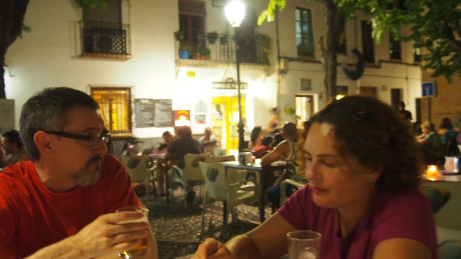 다음날 저녁, 알바이신 지구를 한참 둘러보고 와서 쉬고 있는데 마리나가 노크를 했다. 그라나다를 떠나기 전에 제대로 된 타페오를 즐겨야 한다며 그라나다에서의 마지막 밤에 피에스타를 하자고 했다. 뜨거운 열기가 충분히 식은 밤 10시쯤 마리나와 함께 집을 나섰다. 집 근처 타파스 바에서 시작했는데 알바이신 지구에서 바가 있는 작은 광장들은 한번식 다 들른 것 같다.
