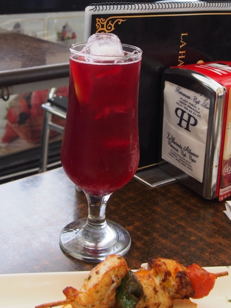 오전에 그라나다 시내를 다니다 너무 더워서 누에바 광장의 카페에 들어갔다. 띤또데베라노를 하나 주문했는데 두툼한 닭 가슴살 꼬치가 올라간 삔초가 나왔다. 가격은 음료 가격만 해서 7유로가 조금 안됐다. 관광객을 상대로 하는 누에바 광장의 카페에서 음료 가격이 다른 곳에 비해 꽤 비쌌는데도 이 정도였다.