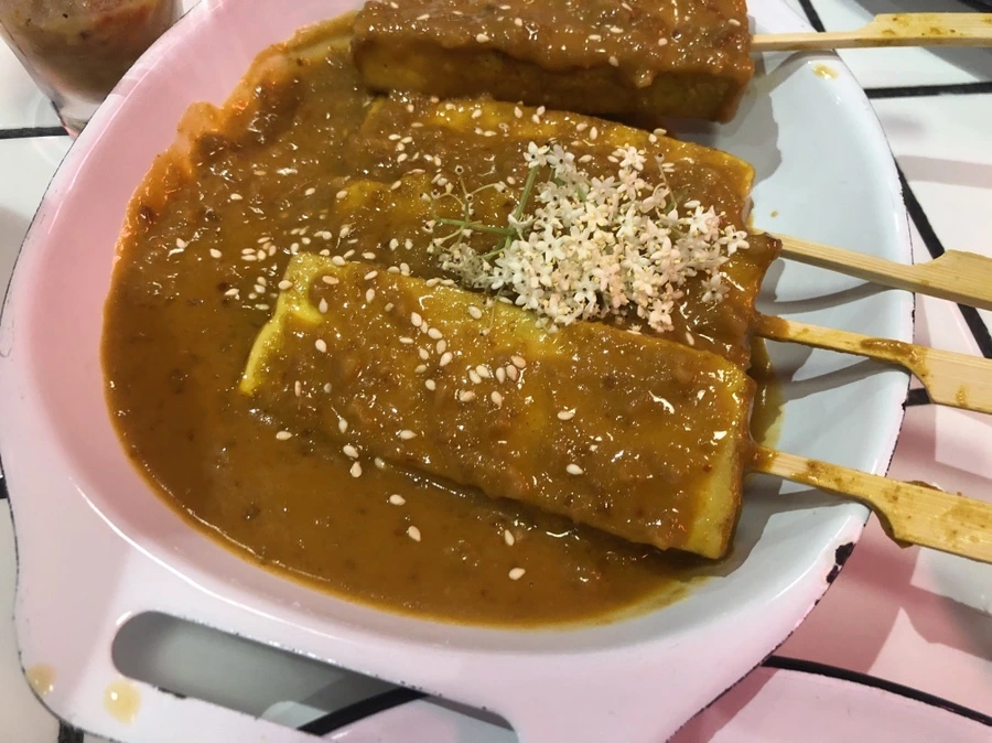 애피타이저로 먹은 비비큐 두부 사타이 BBQ Tofu Satay는 고기를 사용하는 꼬치 요리를 구운 두부로 대신했다. 한 입 베어 물었을 때 땅콩 소스의 꼬소꼬소한 맛이 먼저 입안에 가득 펴졌다. 그다음 부들부들한 두부의 식감이 느껴지면서 두부의 고소함이 소스와 어우러졌다. 맥주랑 같이 먹으면 열 개도 혼자 먹을 수 있을 것 같다.