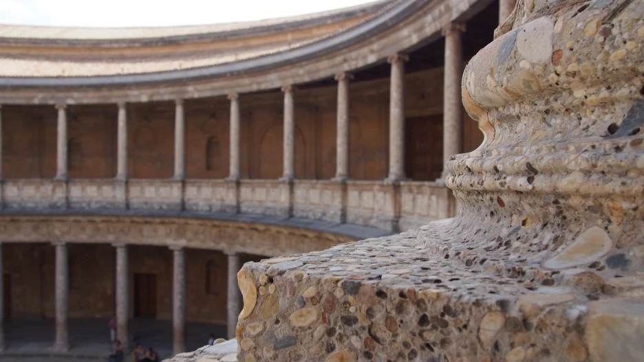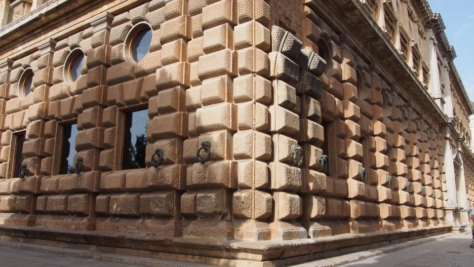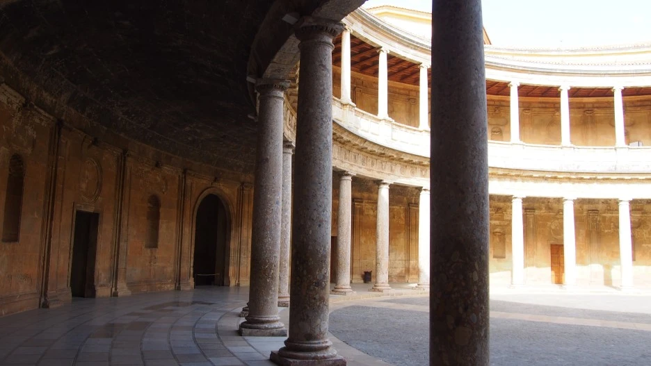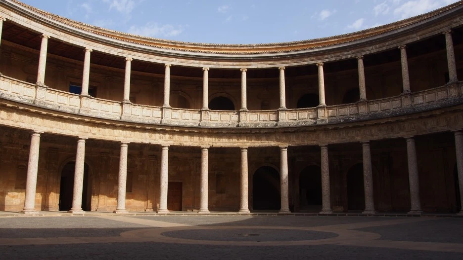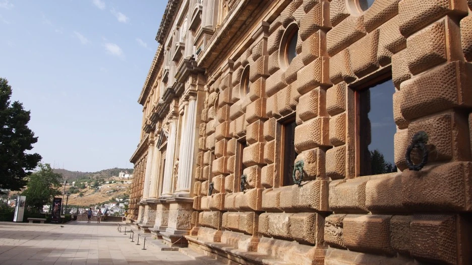 나사리 궁전과 확연한 차이를 보이는 카를로스 5세의 궁전은 외부는 사각형, 내부는 원형을 갖추고 있는 르네상스 양식의 건물이다. 63m 넓이와 17m 높이 크기의 이 건물은 아래층에는 거칠게 다듬은 돌을 사용했고 위층에는 직육면체로 다듬은 돌을 사용했다.