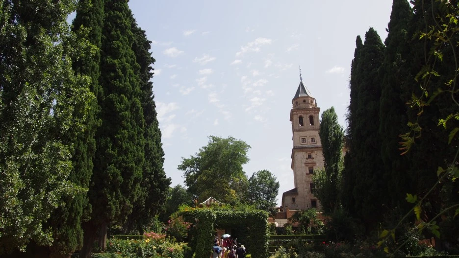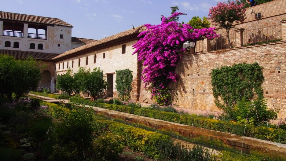 헤네랄리페 Generalife라는 이름은 정원을 뜻하는 하르딘 jardín과 이 정원을 설계한 알라리페 Alarife의 이름을 함께 붙인 것이라는 설이 가장 유력하다고 한다. 얼마나 마음에 들었으면 설계자의 이름을 붙여 주었을까? 하늘로 손을 뻗듯이 올라가는 사이프러스 나무를 비롯해 초록빛이 가득한 관목 나무들이 주를 이루고 저마다 다른 색을 피운 꽃들이 자리 잡고 있다.