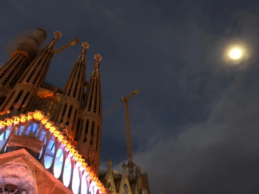 수비라치 Subirachs 가 건축한 고난의 파사드를 부분마다 조명을 비추고 라디오 연극처럼 설명해 주었다. 카탈루냐어로만 하는 행사라 세세하게 알아듣기는 어려웠지만 알고 있는 내용들과 연결해 이해할 수 있었다.