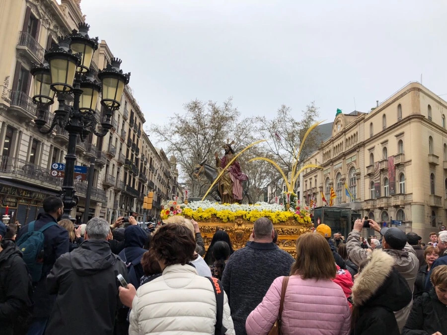 종려 성일 아침 10시 라발지구에 있는 바르셀로나에서 가장 오래된 성당인 산 아구스티 Sant Agustí의 문이 열리고 종려나무를 든 사람들 뒤로 어린 나귀를 탄 그리스도의 모습이 나타났다. 이 성상은 예루살렘으로 입성하는 그리스도의 모습으로 이 뒤로 행렬이 이어졌다.