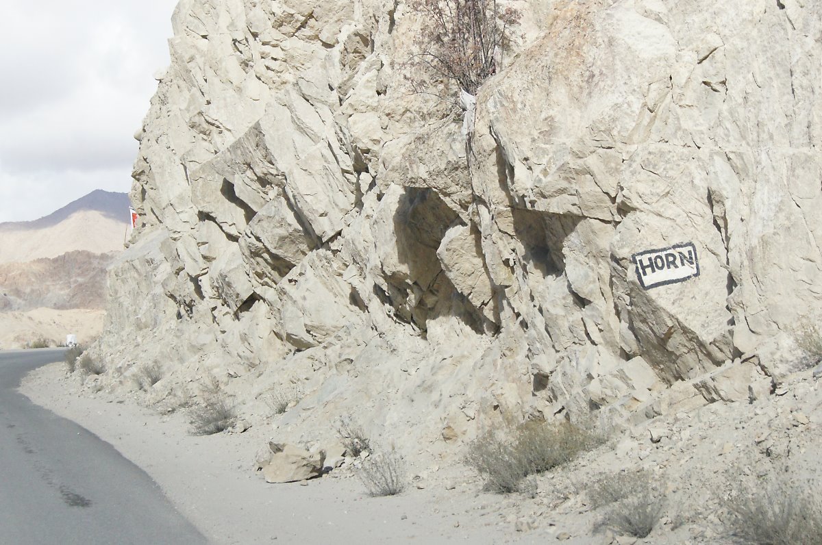 길 앞에 난데없이 바위가 보인다. 커브길이다. 건너편 상황을 보여주는 볼록거울? 바랄 걸 바라라는 듯 없다. 오직 단 하나, 바위에 쓰여있는 "HORN" 만이 우리가 뭘 해야 할지 알려준다. 경적을 울리는 거다. 우리의 운전사, 지미는 경적을 울리는 데 한치의 고민도 없었다. 고막이 쉴 틈이 없었지만 귀를 버리느냐 목숨을 버리느냐 하면, 당연히 귀를 버릴 수밖에 없지 않나. 우리는 경적을 울릴 때마다 흠칫흠칫 놀랐지만 아무런 말도 하지 못하고 침묵을 지키다가, 이내 익숙해졌다.