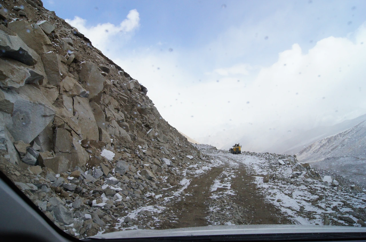 드디어 출발하는 날, 8인승 차에 짐을 먼저 실었다. 운전석에 앉은 지미를 제외하고 분명 자리가 여유로워야 했지만, 한국에서도 그렇듯이 인도의 8인승도 뒷자리가 넓지는 않았다. 게다가 다들 겨울 옷을 입은 상태. 조금씩 구겨져서 차에 담긴 상태로 레를 출발했다. 작은 레 시내를 벗어나는 데는 오래 걸리지 않았다. 그리고, 시내를 벗어나자마자 엄청나게 좋지 않은 도로가 시작되었다.