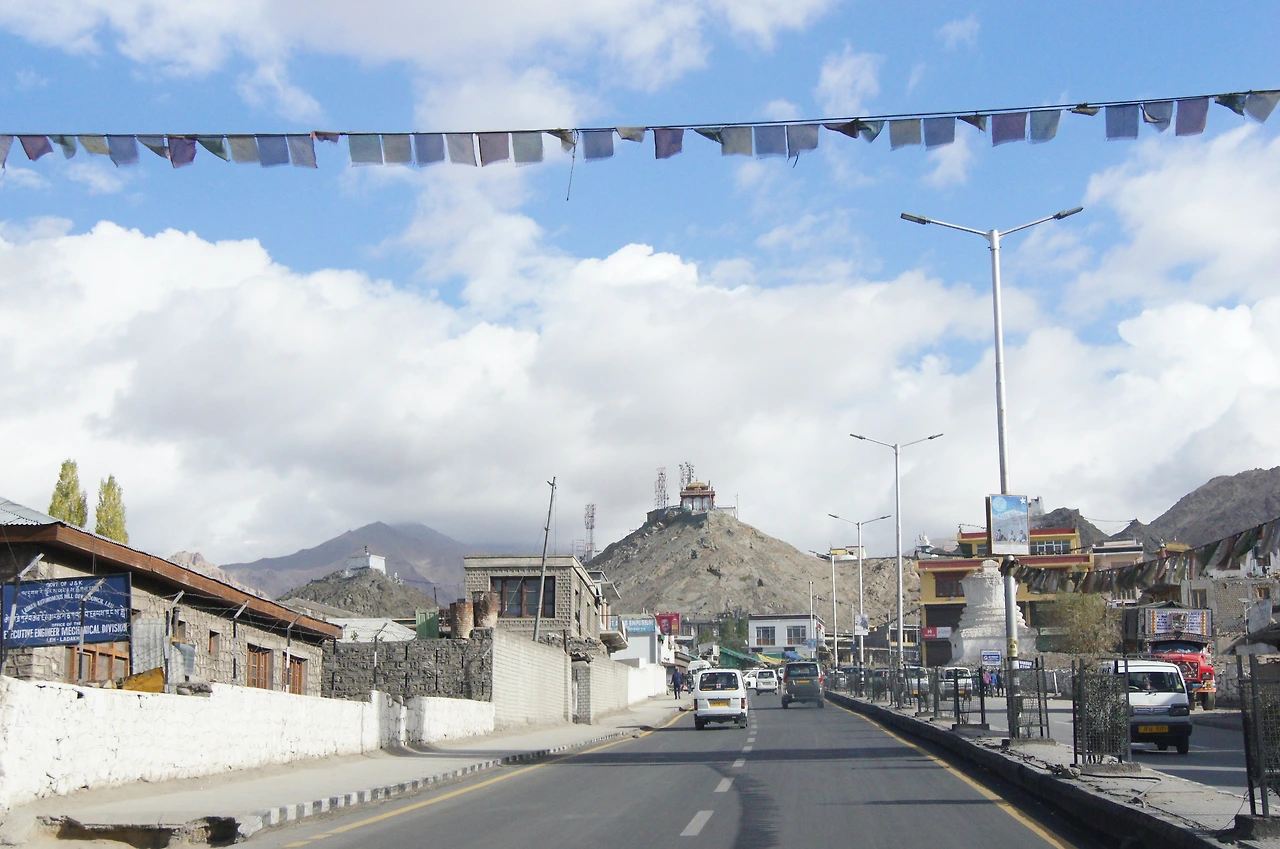 레와 레 주변의 모든 산은 전부 황량한 돌산이다. 어떻게 이렇게까지 풀 한 포기 자라지 않는지 의아할 정도로 돌과 흙만 있다. 워낙 가지각각의 모양새로 생긴 탓에 구경하는 재미가 없진 않지만, 보다보면 역시 조금 질리기도 한다. 그렇게 황량한 산을 가만히 보다보면 산에 리본이라도 두른마냥 선들이 그어져 있다. 어쩌다가 우연히 선들을 발견하고 가만히 산을 바라보며 저 선들은 뭘까 하고 잠시 궁금해했었는데 가만히 보고 있으니 그 선 위로 차가 지나가더라. 도로였다. 그리고 우리는 그 도로를 달리게 되었다.
