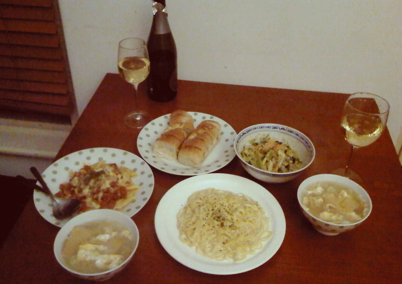 마지막 만찬이라고 와인한병까지 준비해주시고, 울워스 홈브랜드 갈릭 브래드에 샐러드 크림 파스타 그리고 계란국 (나의 유일한 양념 소금으로 간을 해주고 계란 어묵 양파까지 넣어주니 그럴싸했다.) 우리가 처음 만나 가장 근사하게 먹은 만찬이였다. 소금으로만 간을 한 계란국을 우린 비웃었지만, 맛을 보고는 정말 맛있다며 감탄을 했다.