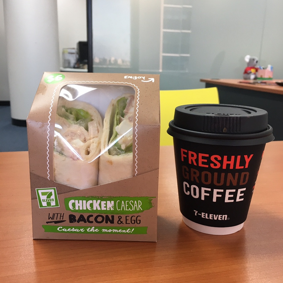 아침 메뉴가 고민일 때면 회사 근처의 세븐일레븐 편의점으로 간다. 이 곳에서는 롱 블랙, 플랫화이트, 카푸치노의 커피를 단돈 $1(스몰 사이즈)에 마실수가 있다. 레귤러 사이즈는 $2, 라지 사이즈도 $3밖에 하지 않는다. 버튼을 눌러 셀프로 뽑아내는 커피이기 때문에 맛도 늘 똑같고 카페에서 파는 커피들과 맛도 다를 바가 없다. 거기다가 저렴한 가격은 덤이다. 세븐일레븐에서는 런치타임 동안 1+1 행사도 하고 있으며, 샌드위치나 랩 그리고 삼각김밥 같은 간단한 식사도 판매하고 있어서 아침 메뉴가 고민일 때면 다양한 옵션이 있는 세븐일레븐으로 간다.
