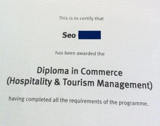 나는 Hospitality and Tourism Management의 디플로마 파트타임 코스를 등록했었다. 나는 세미 파인 다이닝 레스토랑에서 호스티스/리셉션 업무를 맡고 있었는데 단순히 손님의 예약을 받고 자리를 안내하는 업무가 아니었고 일을 하다 보니 해야 할 일들이 정말 많았다. 그중에서도 레스토랑에서 대기업들의 이벤트가 열리면 참가 인원 명단을 파악하여 테이블 레이아웃을 지정하고, 참가자 개개인의 식습관을 따져 셰프와 상의하여 메뉴를 구성하기도 해야 했고 발렌타인데이나 공휴일이 되면 밀려드는 예약의 시간을 조정하여 턴오버가 잘 될 수 있게 하여 레스토랑의 프로핏을 최대로 끌어올리는 등의 일을 했다. 그러다 보니 내가 어떻게 하느냐에 따라 레스토랑의 수익이 좌우될 수 있는 것이 세일즈 업무 같기도 해서 흥미를 느꼈다. 그렇게 이 일에 대해 공부를 하면 이 분야에 대해 더 잘 알 수 있을 것이라 생각했다.