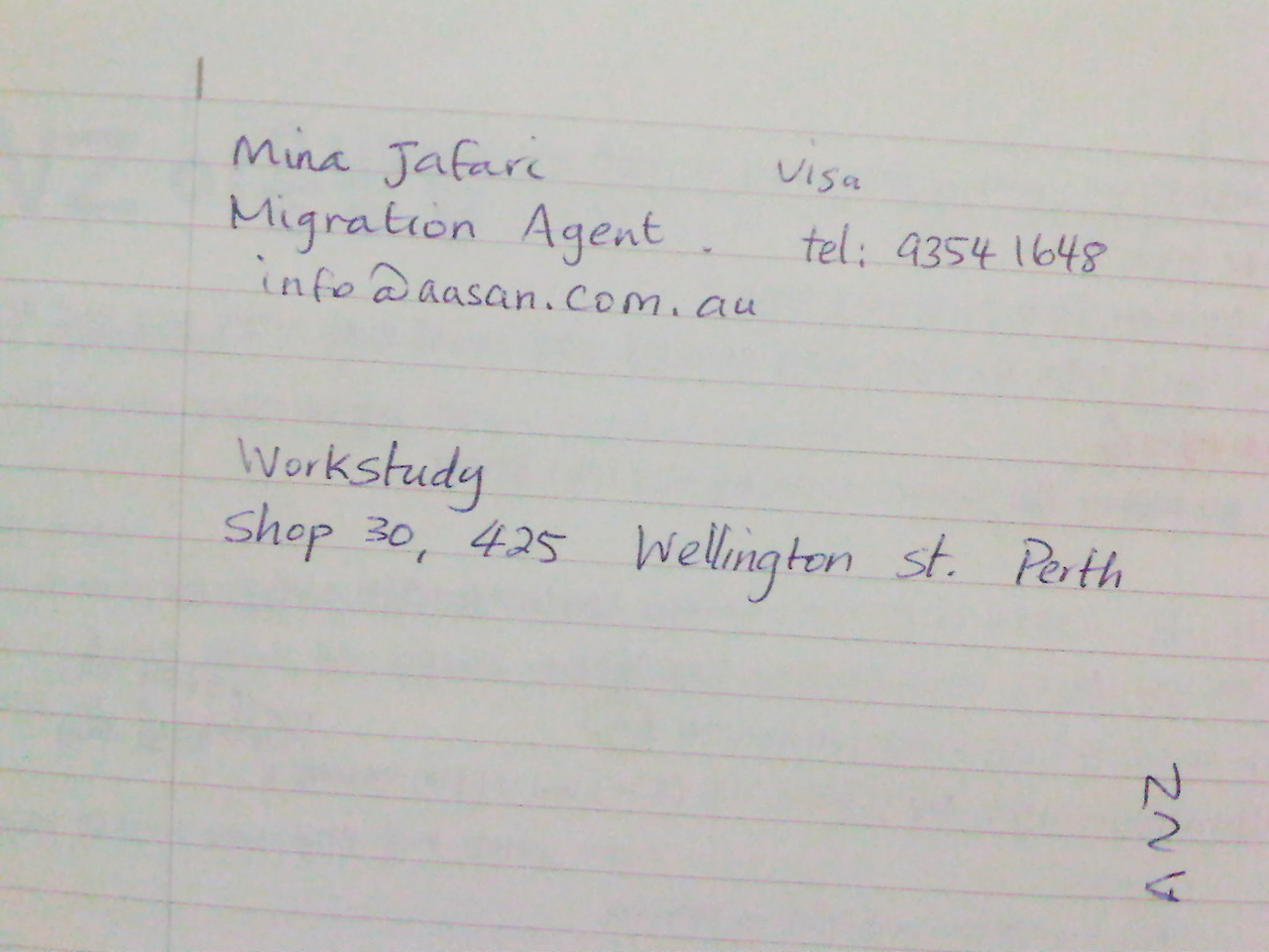 기내식을 다 먹고, 앉아 있는데 옆자리 아저씨가 말을 거신다. 호주에는 무엇을 하러 가니, 학생이니 등등 질문을 하셨고 나는 워킹 홀리데이를 간다고 하셨다. 아저씨는 비자 관련 에이전트를 하나 알려주셨고, 나중에 호주에 더 머무르고 싶고 비자 문제가 생기면 저 곳에 연락을 해보라며- 꽤 괜찮다며 추천을 해주셨다. 그렇게 아저씨와 짧은 대화를 나누고 비행기에서 내려 작별 인사를 하고 헤어졌다.