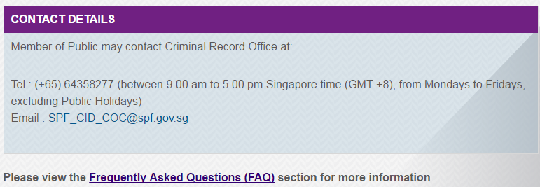 나는 우선 싱가폴 경찰청 홈페이지 (Singapore Police Force 줄여서 SPF) 에 들어가서 범죄 경력 증명서에 대해 관련 있는 사항이 있는지 찾아보았다.