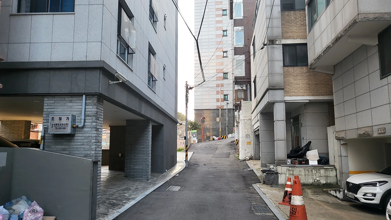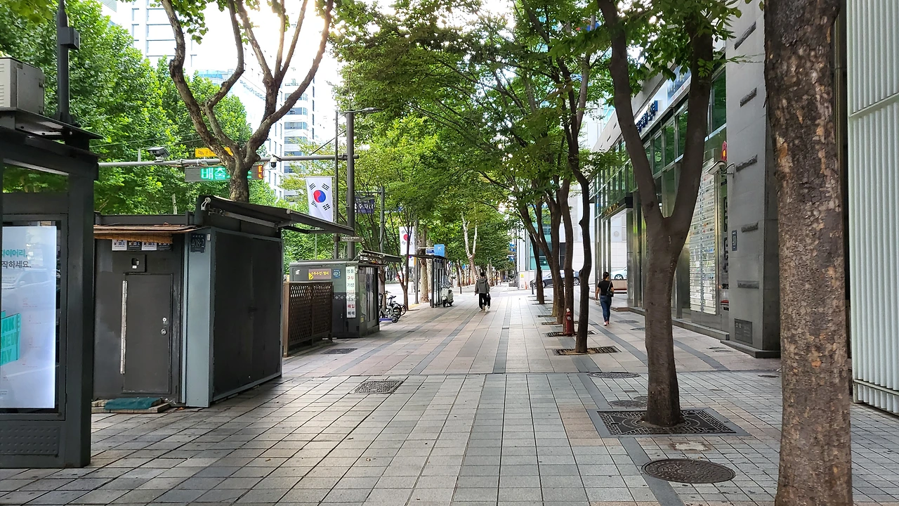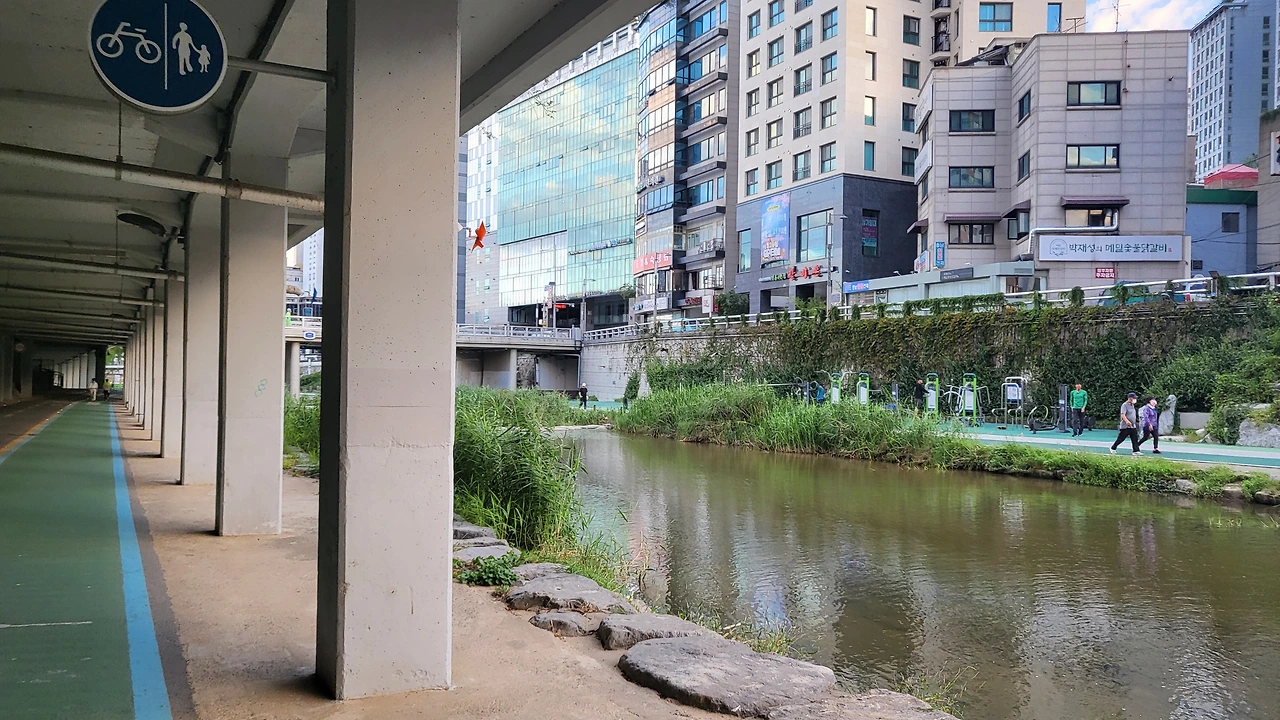 바로 앞 천 덕분에 여행하는 느낌 받으며 걷기