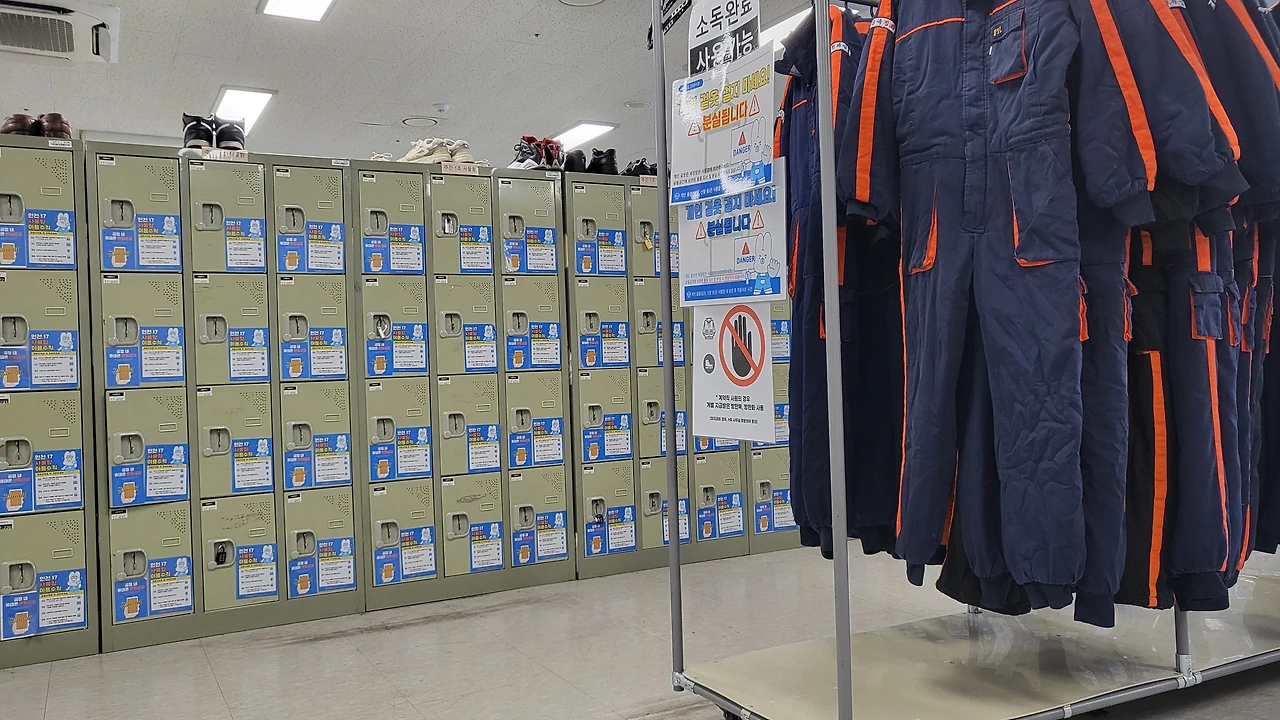 사물함에 개인 물품 넣고 자물쇠 잠그기