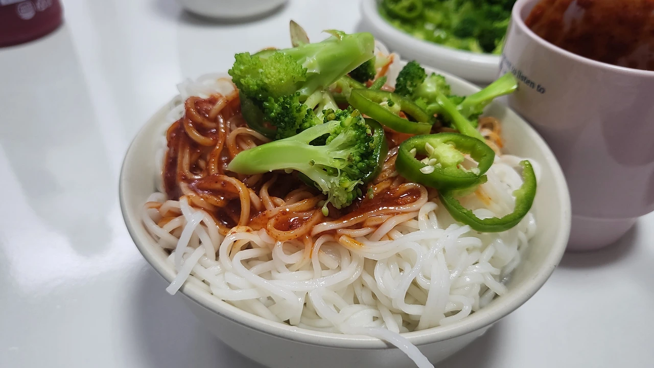 새콤하고 매콤한 비빔면 먹기 (No 밀가루 Yes 쌀가루)