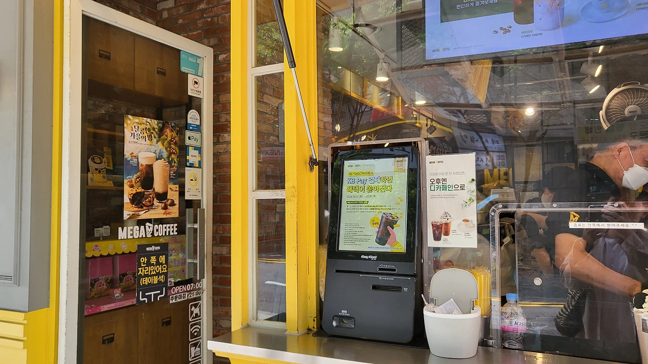 공원 근처 메가 커피에서 커피 한 잔 주문