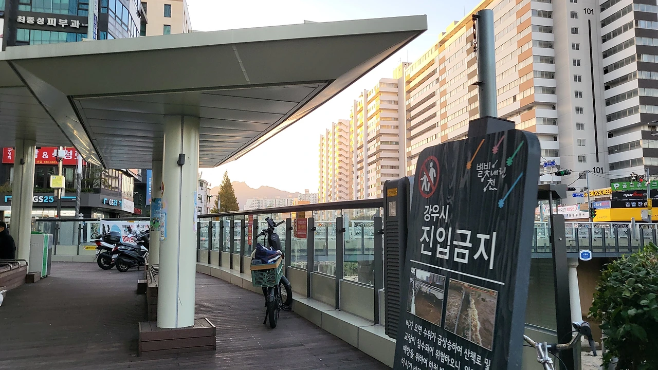 천을 따라 걸어 지하철 탑승하기