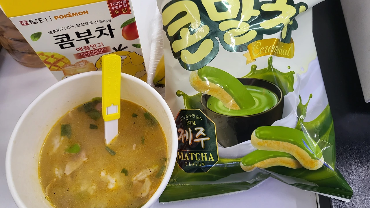 순대국밥 컵밥과 콘말차 간식