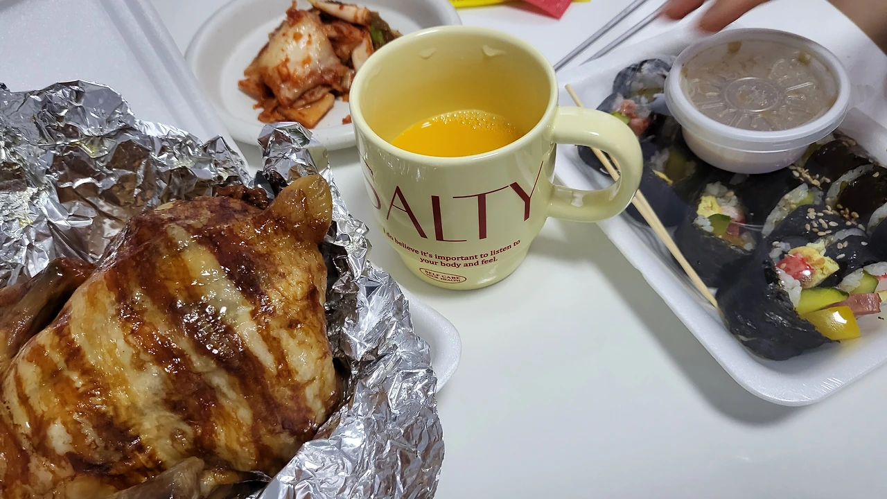 시장 통닭 하나와 마약 김밥 하나 구매