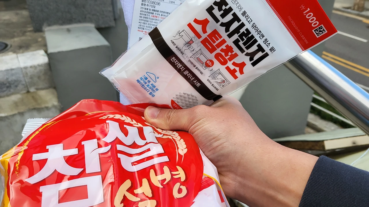 과자, 내일 축구할 때 신을 양말, 전자레인지 청소 용품 등