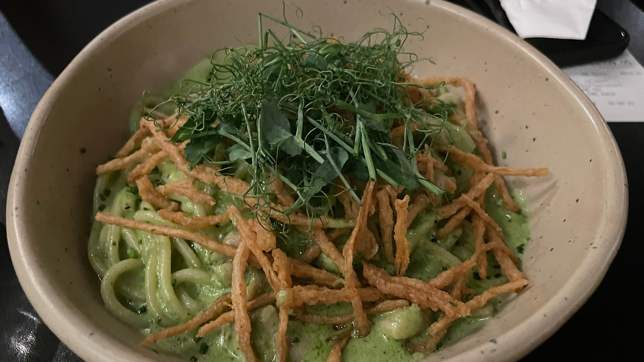 웬 풀 맛 나는 크림 파스타였다.