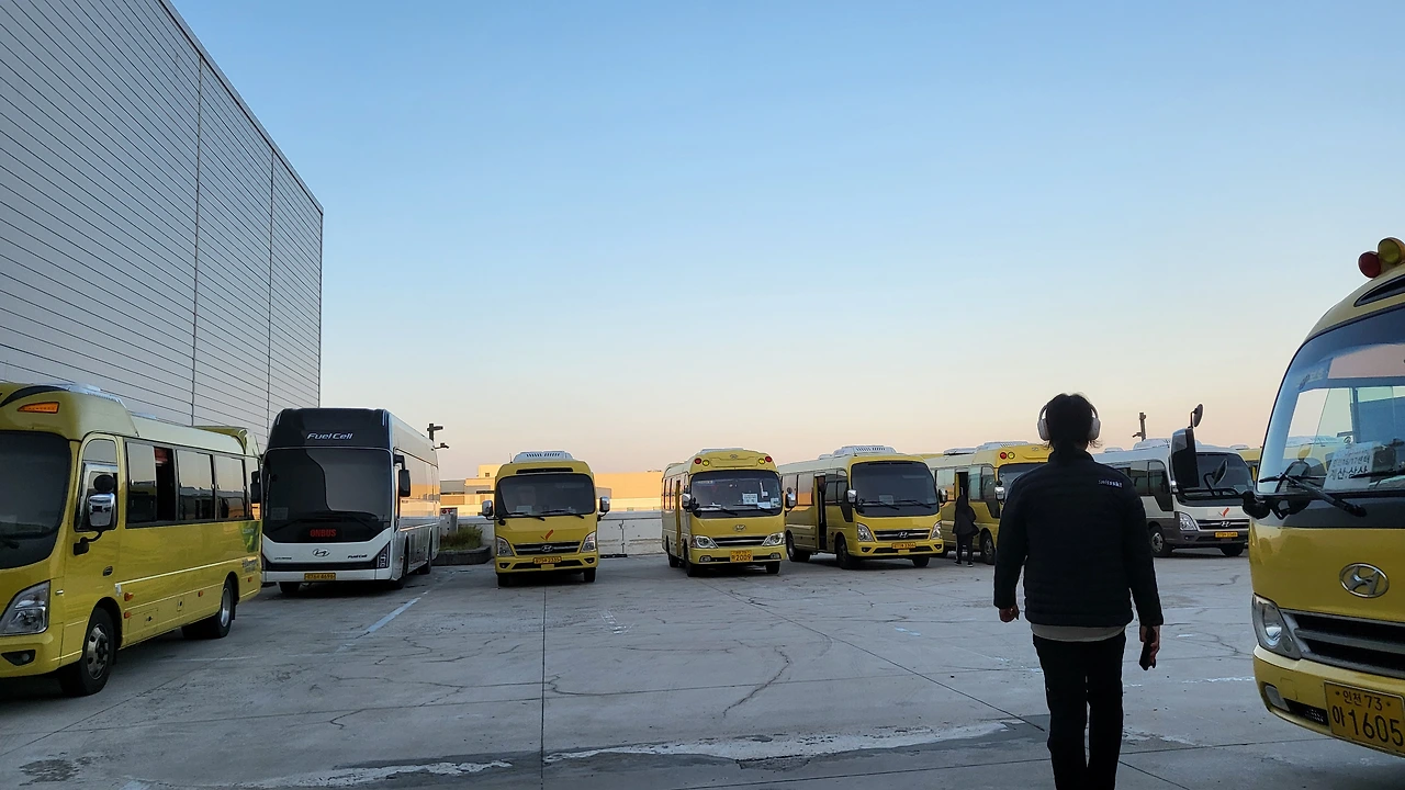 오전 6시 45분 셔틀버스 타러 출발