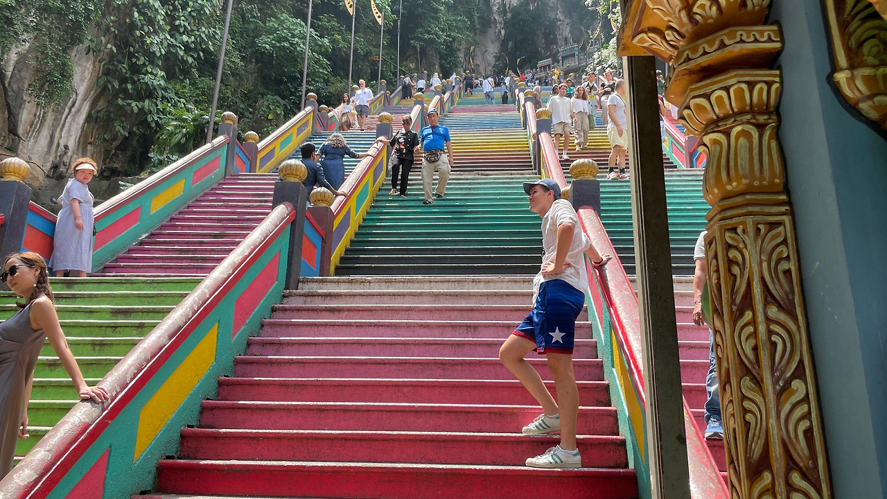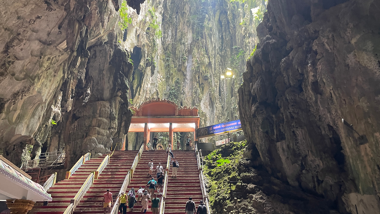 배부르게 잘 먹고 Batu Caves 힌두교 사원으로.