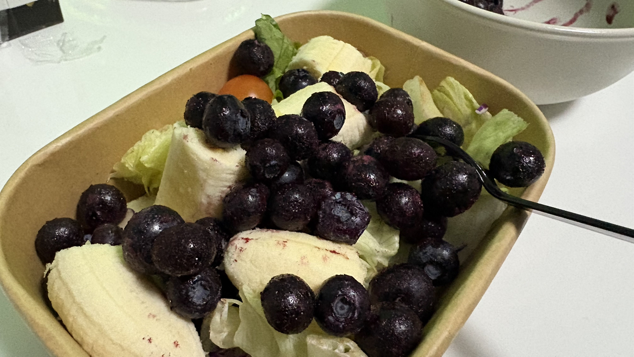 샐러드, 바나나, 블루베리, 두유