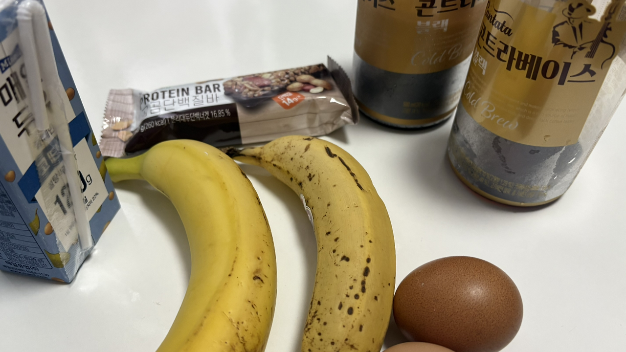 첫 끼 = 두유 바나나 단백질바 구운란