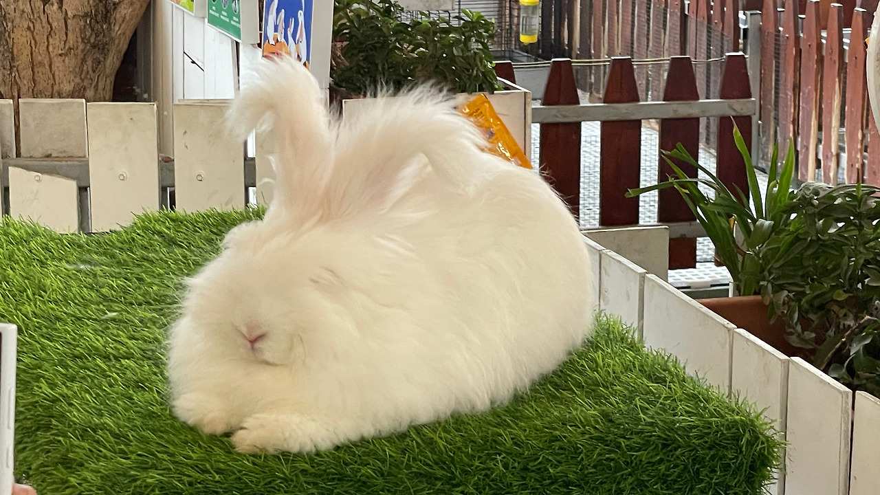 가는 길에 보이는 토끼 한 마리.
