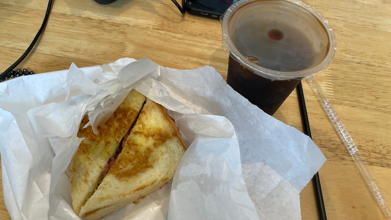 커피 한 잔과 토스트 하나.