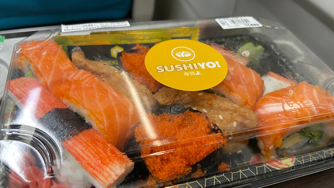 옛날 무궁화호처럼 음식을 돌아다니며 판다.